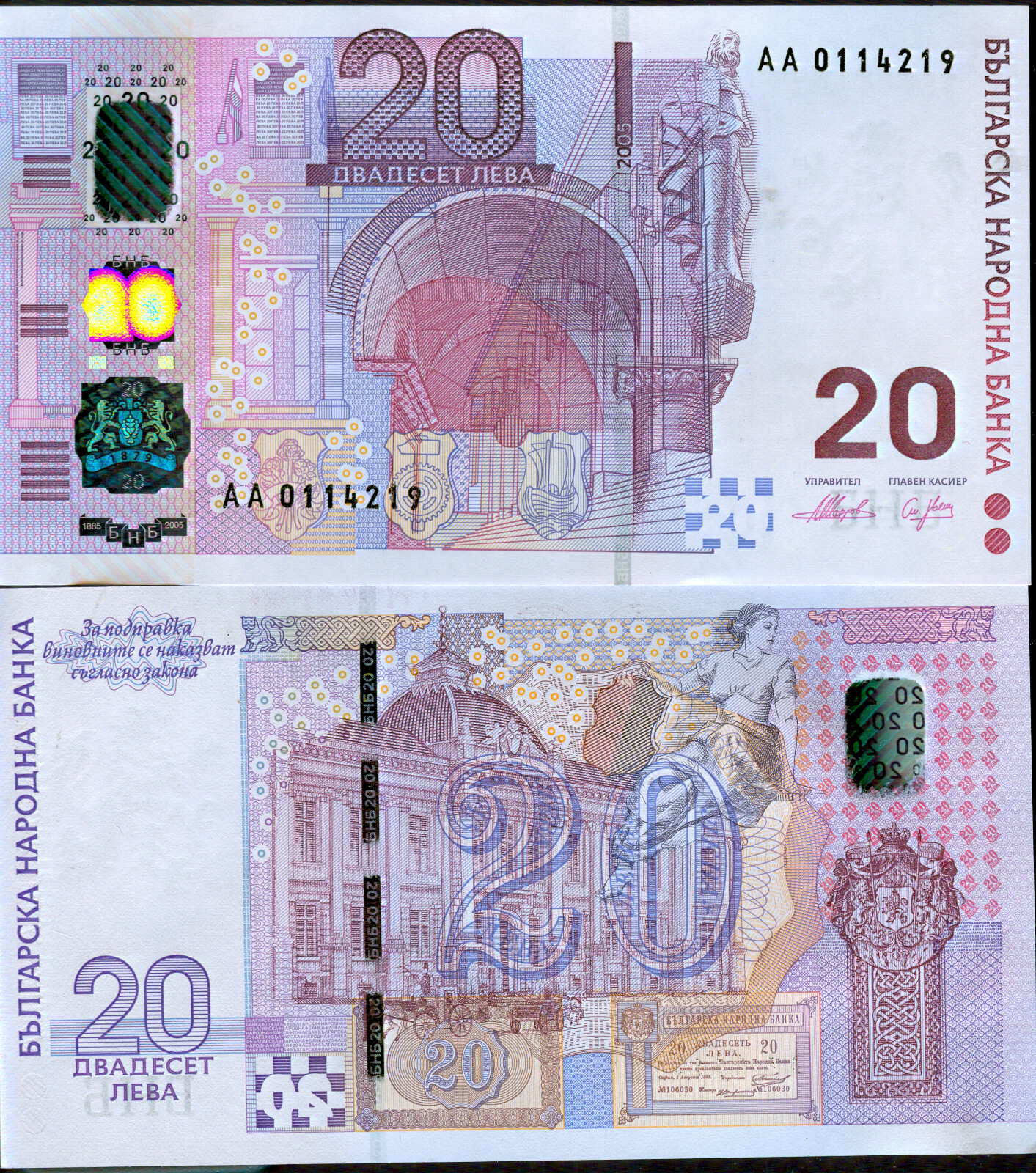 Bulgaria 20 Leva 2005 HYBRID AA PREFIX P 121 UNC