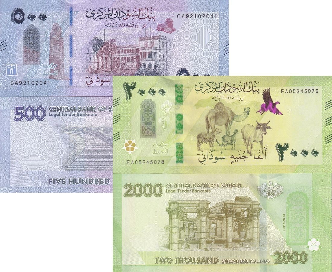 Sudan set 2 UNC 500 2000 Pounds 2025 / 2026 P New Design Camel